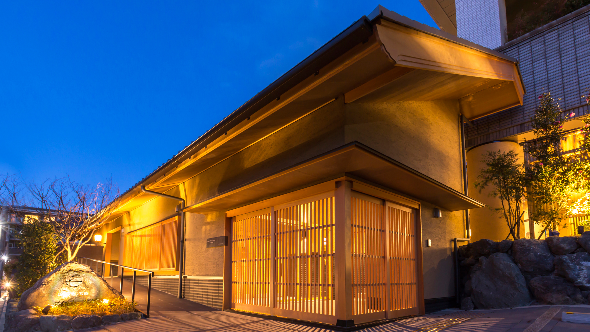 ​入り口の風情: ホテルの入り口にはしし脅し(鹿威し)があり、カコン、と響く音が京都らしい風情を演出してくれます。